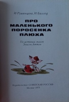 Радиопостановка по мотивам сказок английской писательницы Элисон Аттли о приключениях поросёнка Сэма Пига. Элисон Аттли с 1939 года по 1965 год опубликовала серию книг посвящённых приключениям поросёнка Сэма. Серия книг о поросёнке Сэме включает: «Сказки о четырёх свиньях и Броке Барсуке» (Tales of the Four Pigs and Brock the Badger, 1939), «Приключения Сэма Пига» (The Adventures of Sam Pig, 1940), «Сэм Пиг идёт на рынок» (Sam Pig Goes to Market, 1941), «Шесть сказок о Броке Барсуке» (Six Tales of Brock the Badger, 1941), «Шесть сказок о Сэме Пиге» (Six Tales of Sam Pig, 1941), «Шесть сказок о четырёх свиньях» (Six Tales of the Four Pigs, 1941), «Сэм Пиг и Салли» (Sam Pig and Sally, 1942), «Сэм Пиг в цирке» (Sam Pig at the Circus, 1943), «Свинка Сэм в беде» (Sam Pig in Trouble, 1948), «Навеки твой, свинка Сэм» (Yours Ever, Sam Pig, 1951), «Свинка Сэм и поющие ворота» (Sam Pig and the Singing Gate, 1955), «Свинка Сэм отправляется на море» (Sam Pig Goes to the Seaside, 1960), «Книга сказок о свинке Сэме» (The Sam Pig Storybook, 1965). В 1975 году в СССР издательством «Советская Россия» была напечатана книга «Про маленького поросёнка Плюха» (Авторы: Ирина Румянцева и Инга Баллод).