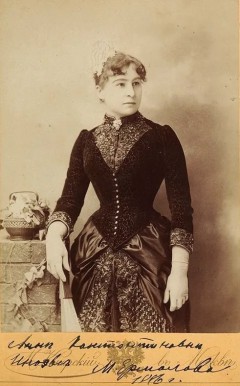 Мария Николаевна Ермолова (15.07.1853г., г. Москва - 12.03.1928г., г. Москва) - русская драматическая актриса. Прославилась ролями свободолюбивых личностей, преданных своим идеалам и противостоящих окружающей пошлости. Заслуженная артистка Императорских театров. Заслуженная артистка Императорских театров (1902), народная артистка Республики (1920), Герой труда (1924).